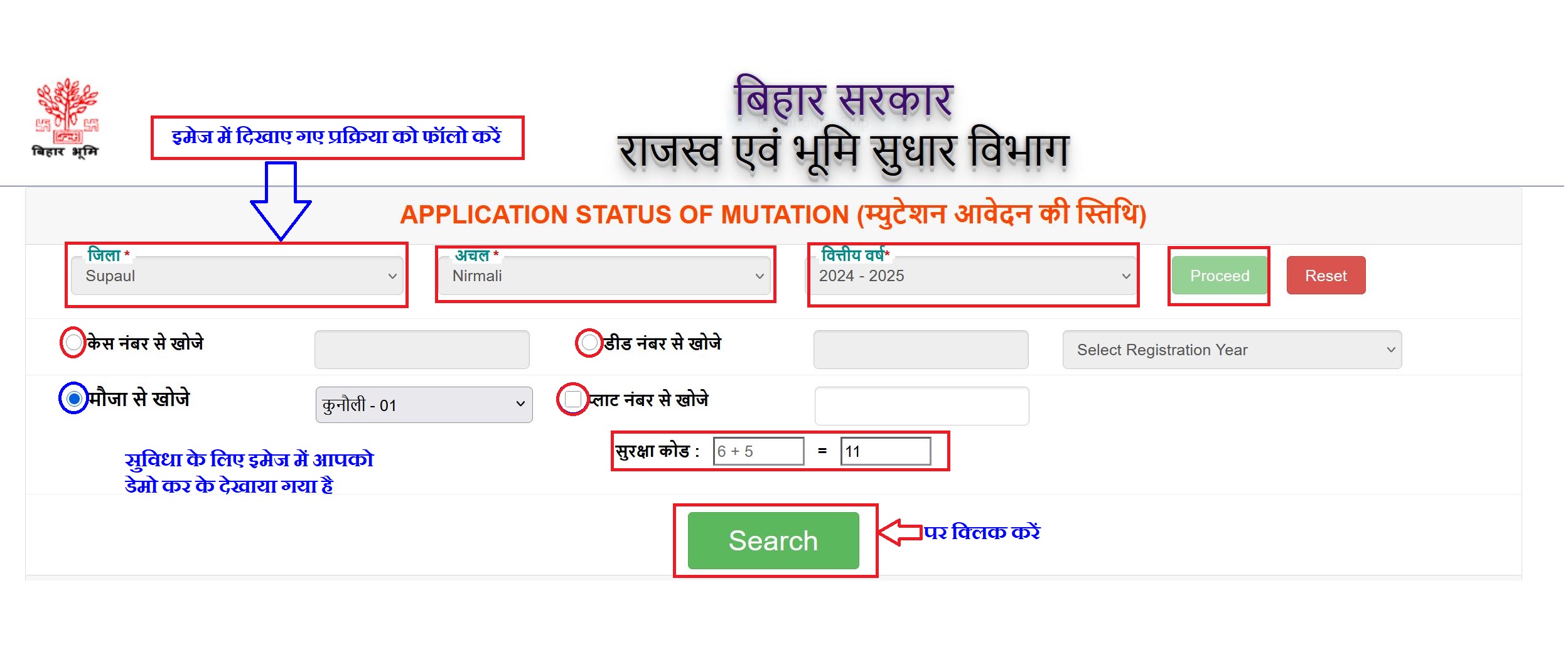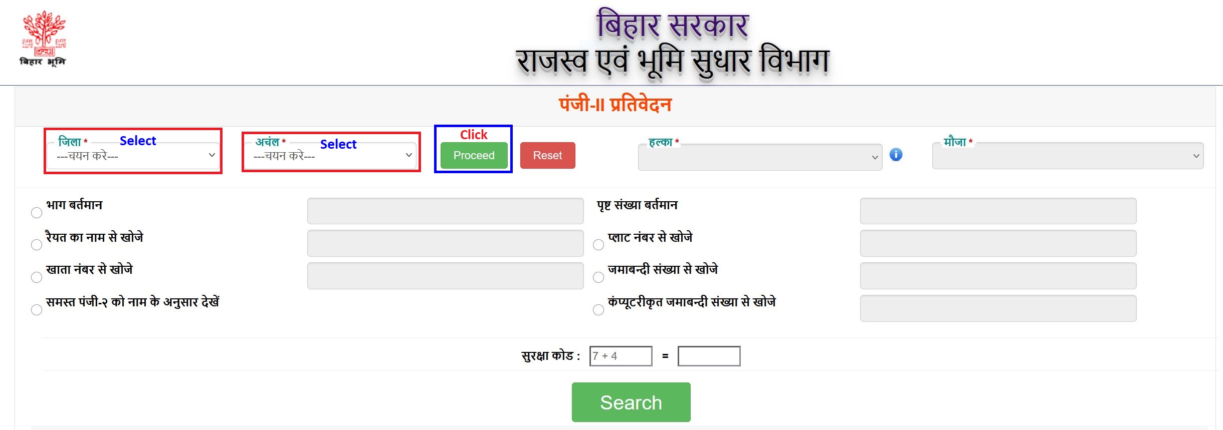 जिला और अंचल को चयन कर Proceed पर क्लिक करें :-
