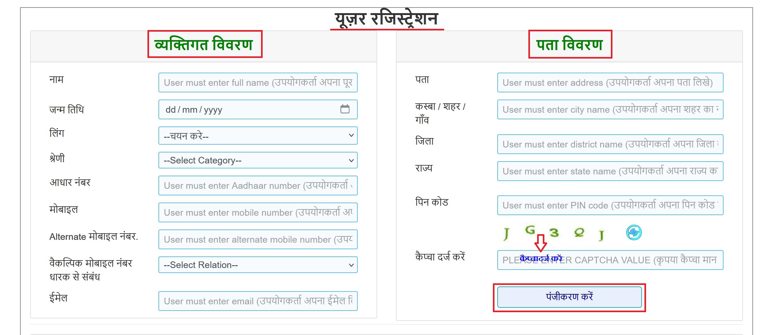 नये उपयोग करता के लिए "पंजीकरण" करने का प्रक्रिया :-