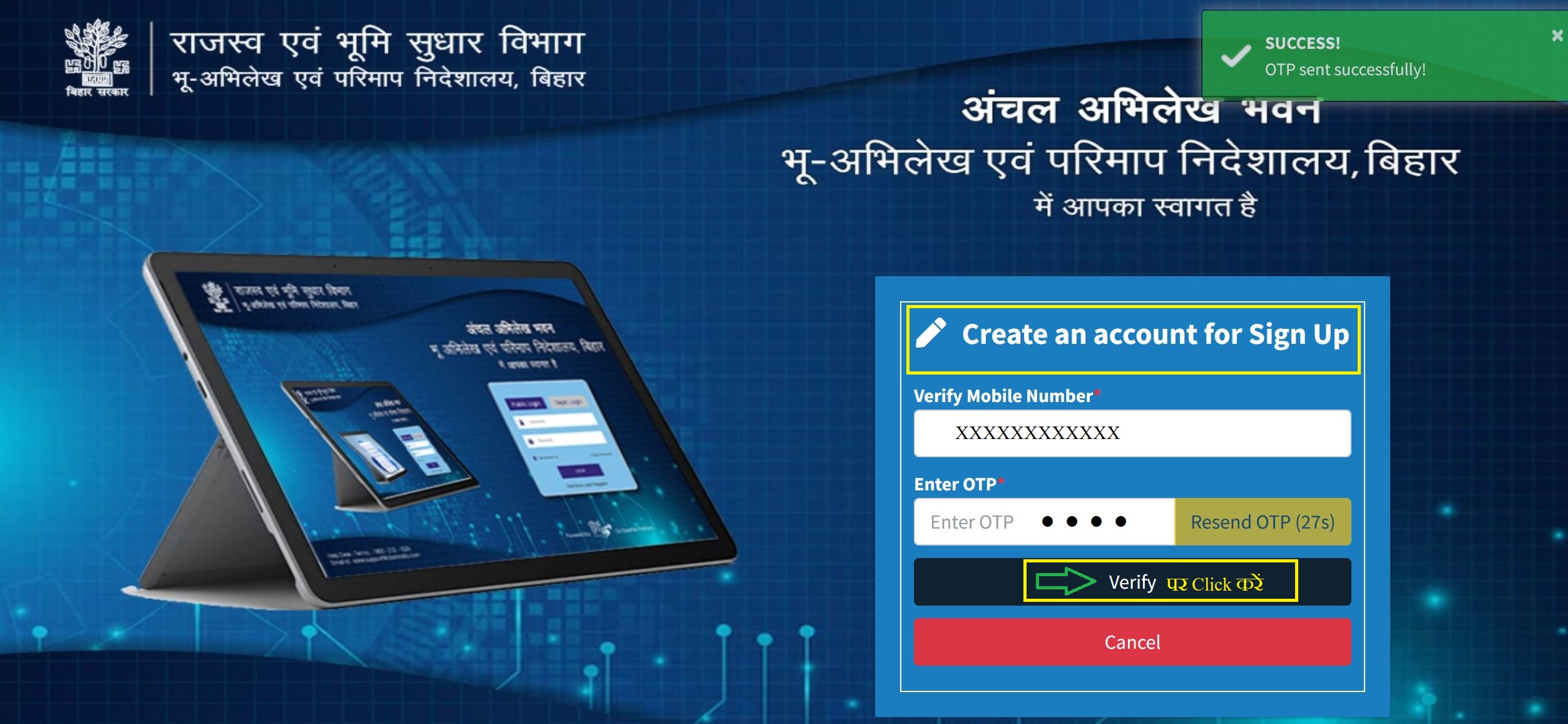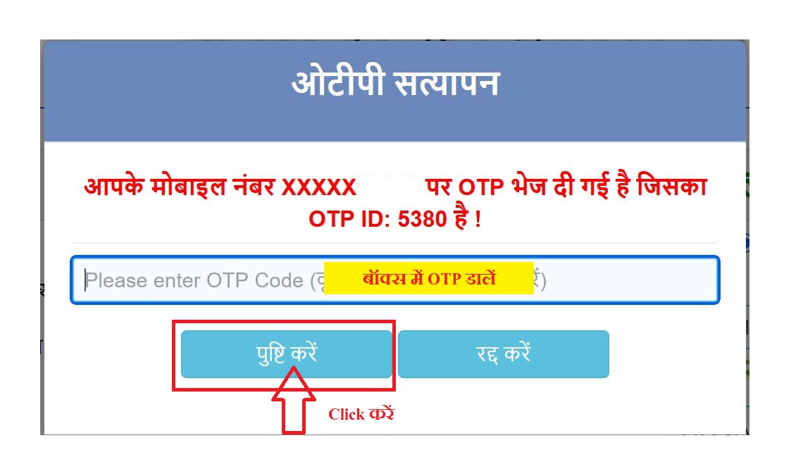 - Enter OTP वाले बॉक्स में ओ टी पी भरें
