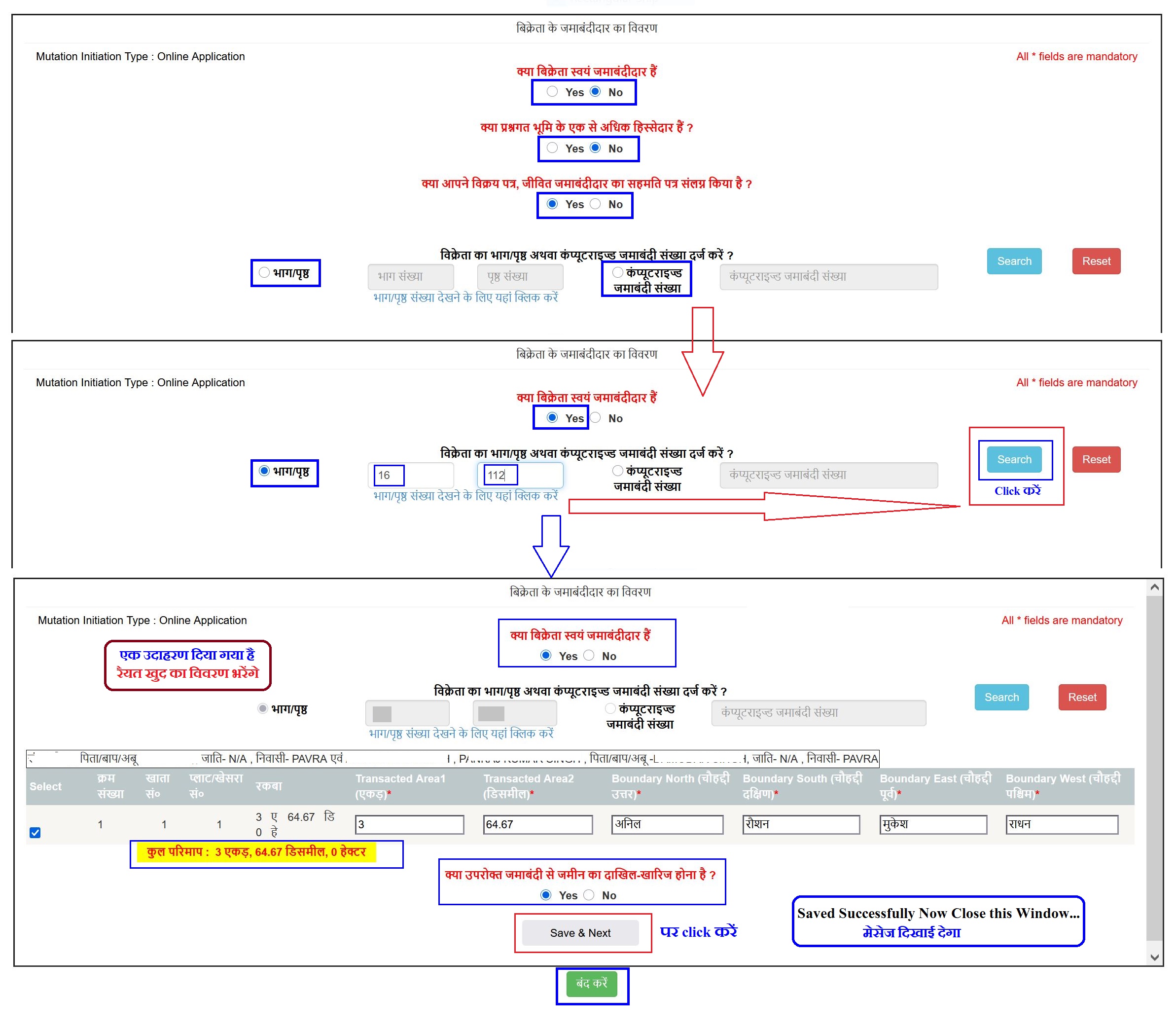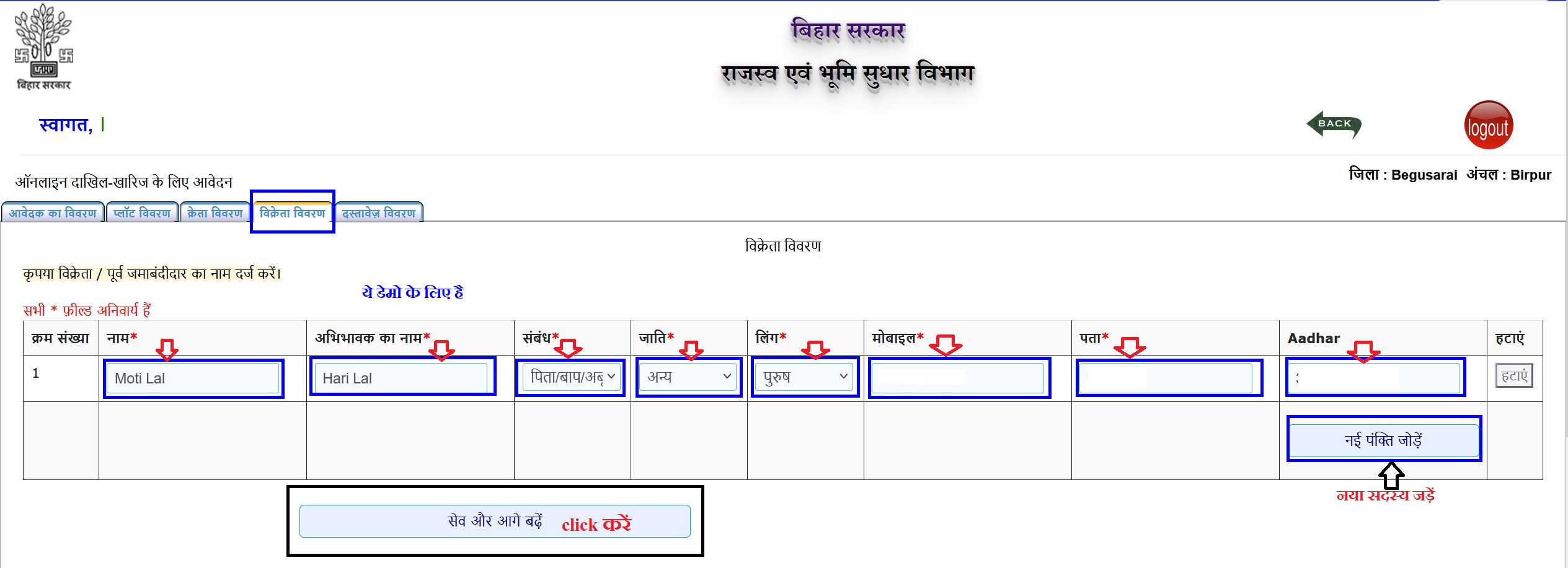 - नया विंडो खुलेगा इसमें विक्रेता के जमाबंदीदार का विवरण भरें (ये स्टेप-3 है)