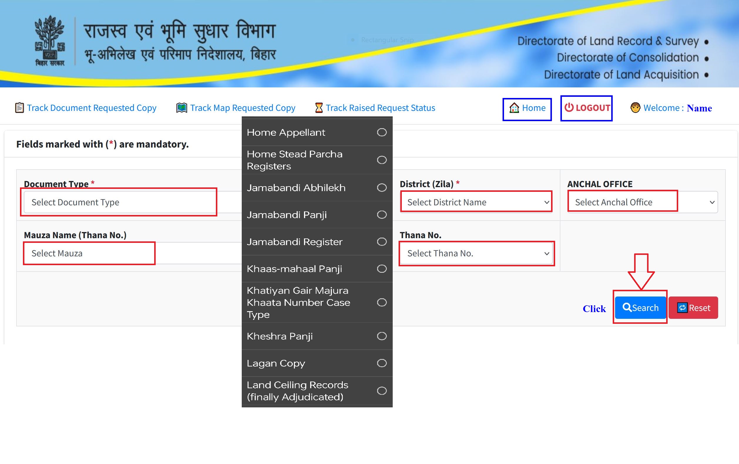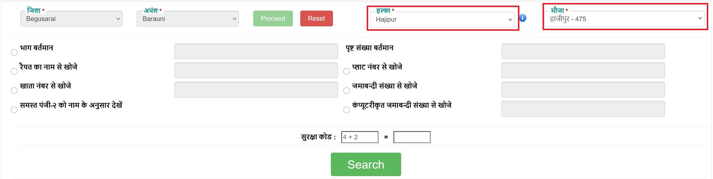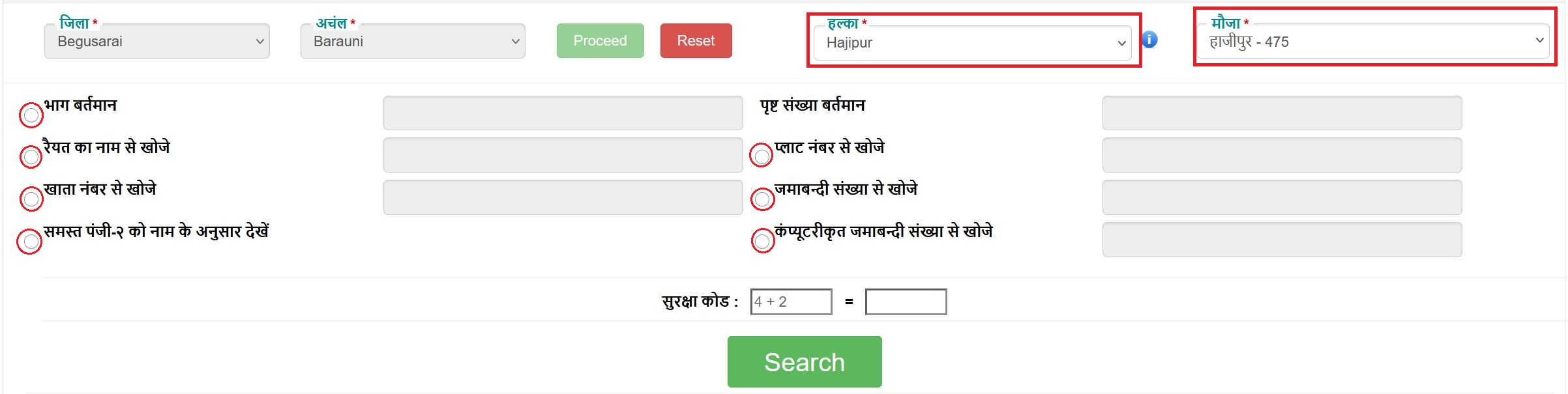 - केस नंबर से खोजे, डीड नंबर से खोजे, मौज से खोजे और प्लॉट नंबर से खोजे