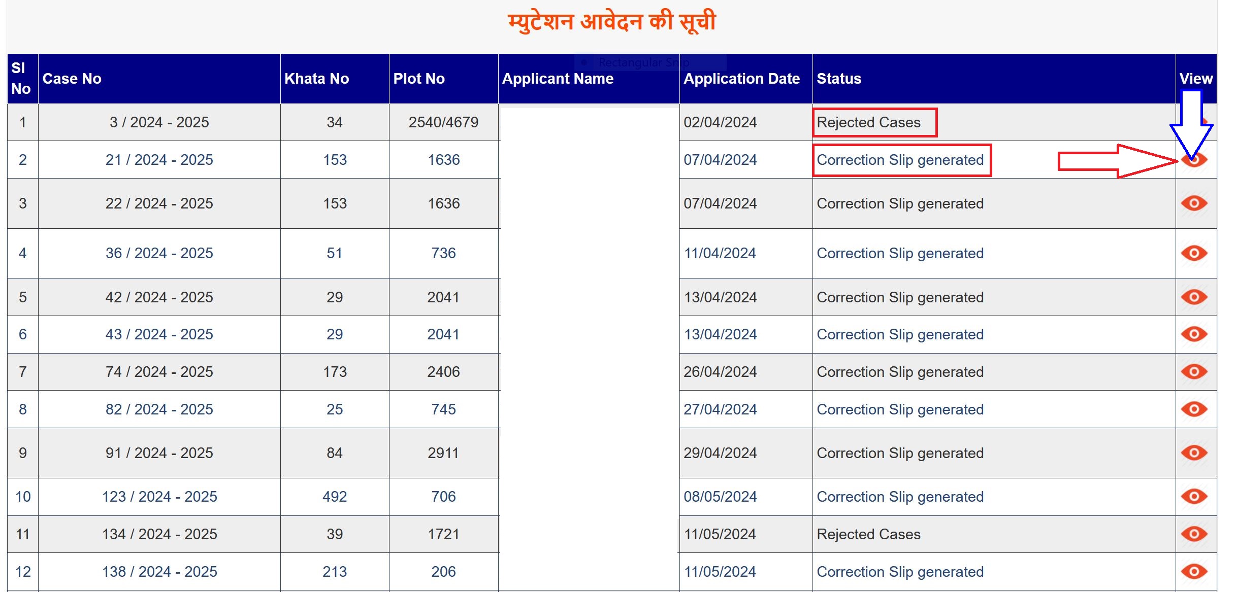 - नई विंडो में म्यूटेशन आवेदन की सूची खुलेगा