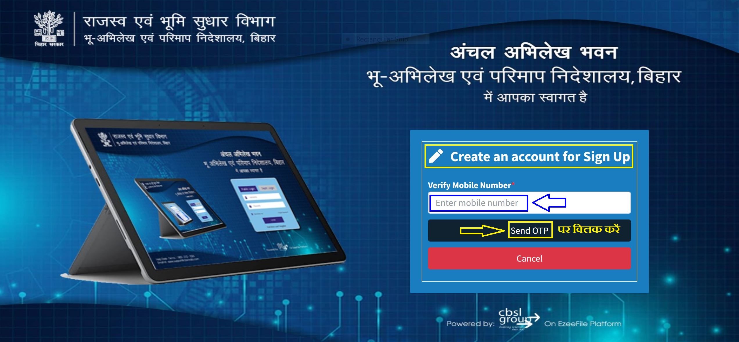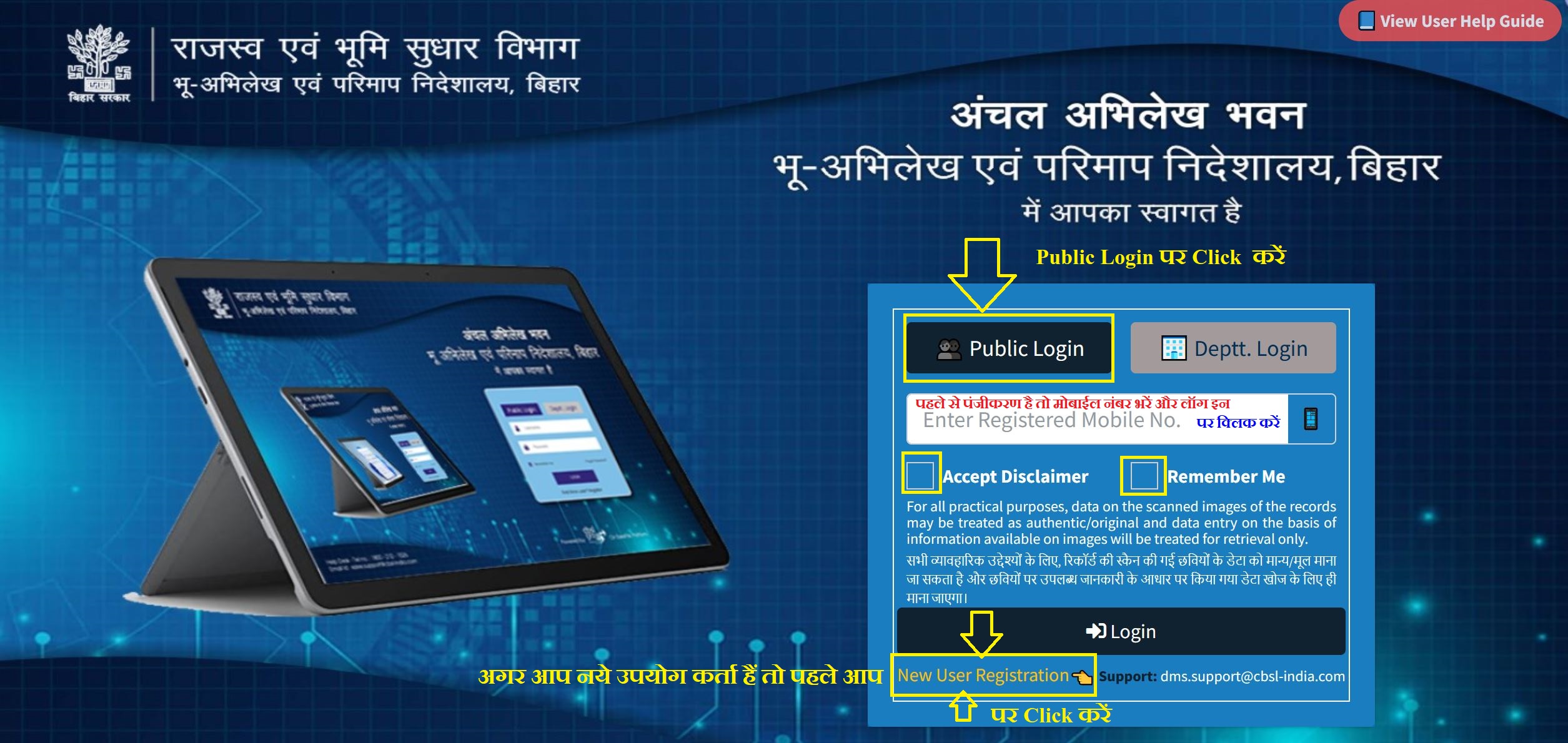 भू-मानचित्र / भू-अभिलेख / जमाबंदी रेजिस्टर-II देखने के लिए पंजीकरण करने का प्रक्रिया