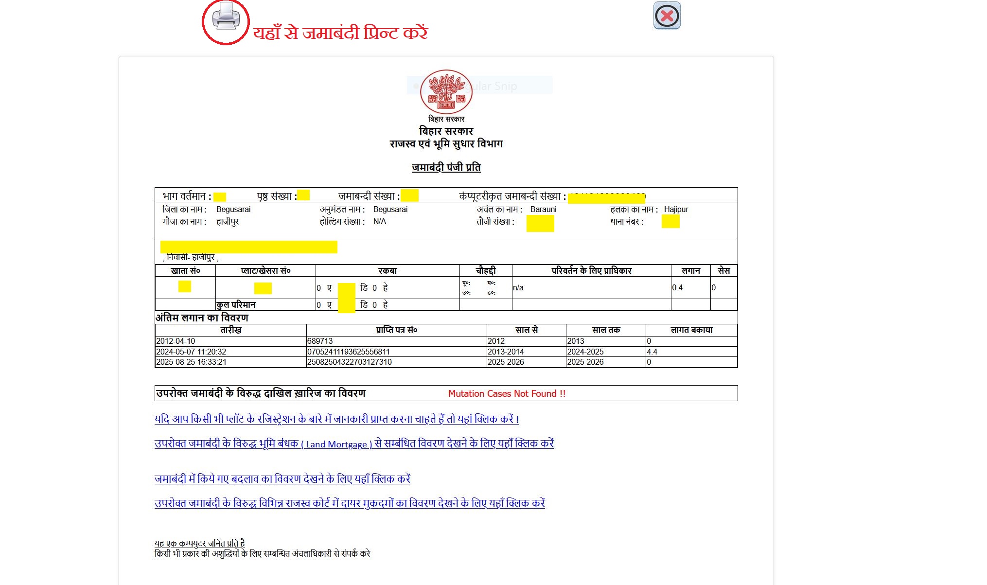 - इसमें आप जमाबंदी संबंधित सारी जानकारी देख सकते हैं